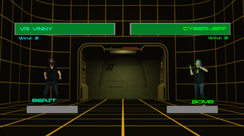 Created for Giant Rom 4. I took clips of Jeff and Vinny playing VR games and used them as sprites for a 2D fighting game. I would have loved to have included more characters, but obviously two was plenty of work for the scope of a game jam. It felt weird not having Jason in a Giant Bomb fighting game, but there isn't enough video of him waving his arms around frantically.